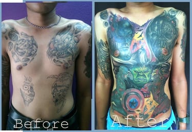 Expertly transforming old tattoos into fresh new art.